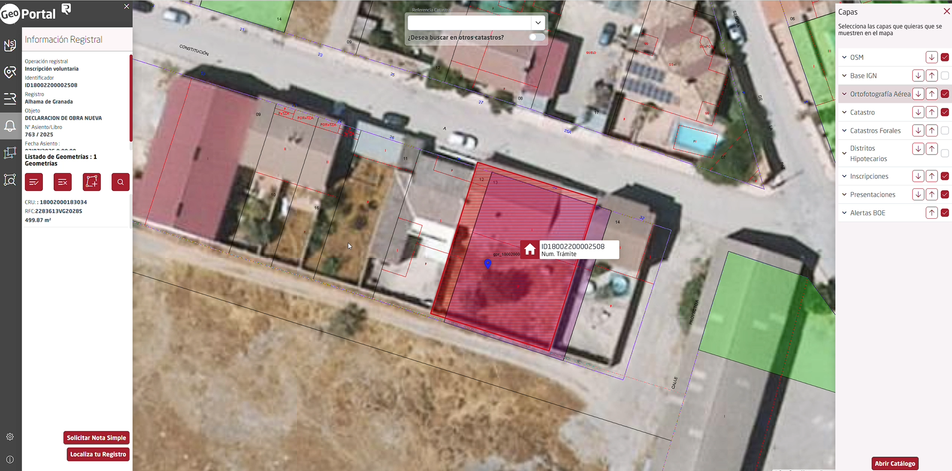 • Selecciona la opción «obtener geometrías registrales inscripciones» para descargar los datos de la propiedad en un archivo GML.